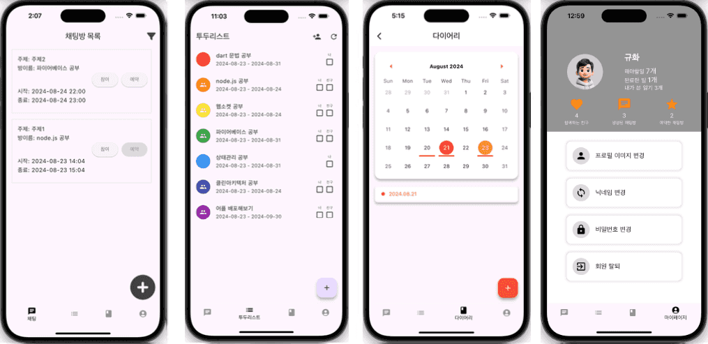 친구와 함께 투두리스트를 작성하고 완료 여부를 공유하며 동기부여 제공